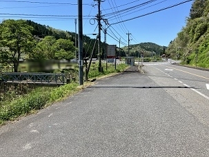 国道183号から国道180号へ変わって7キロくらい北上した辺りです。日南湖を過ぎて下り坂が右へ大きくU字にカーブした所にあります。